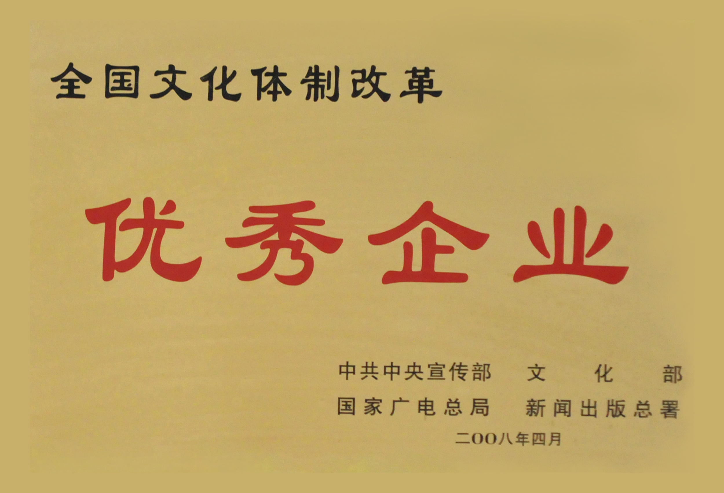 2008年4月,中共中央宣傳部、文化部、國家廣電總局、新聞出版總署授予“全國文化體制改革優(yōu)秀企業(yè)”稱號。
